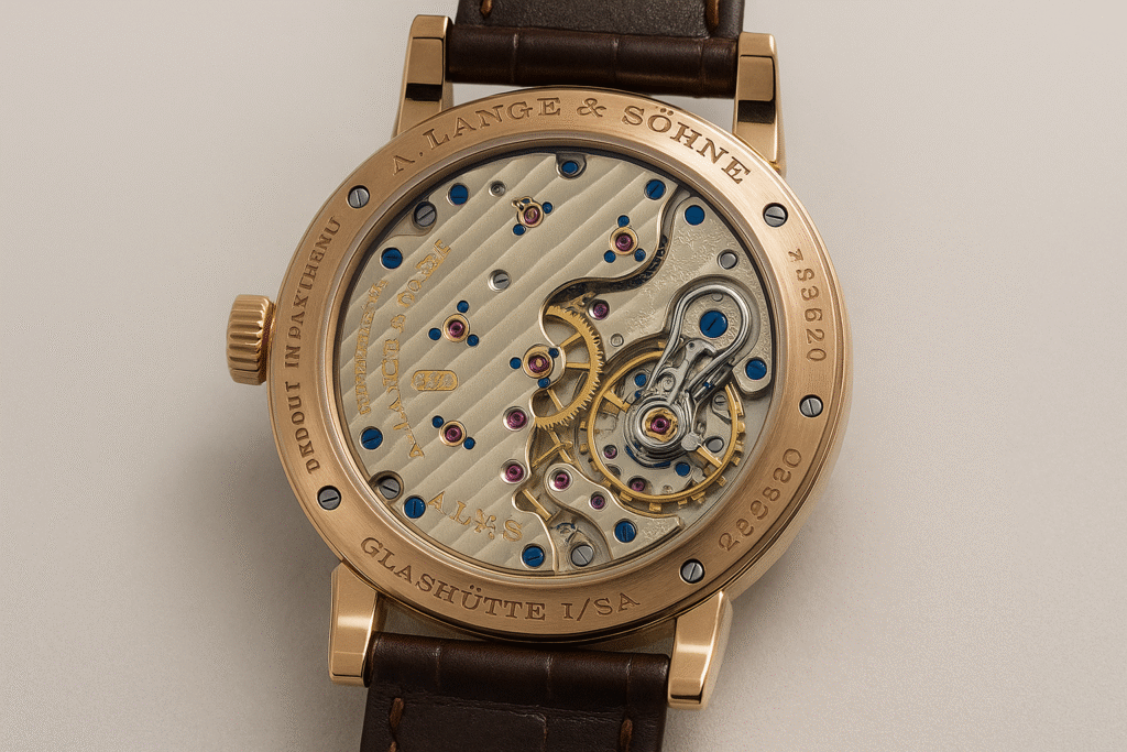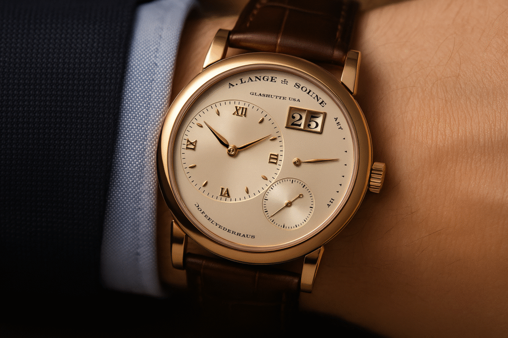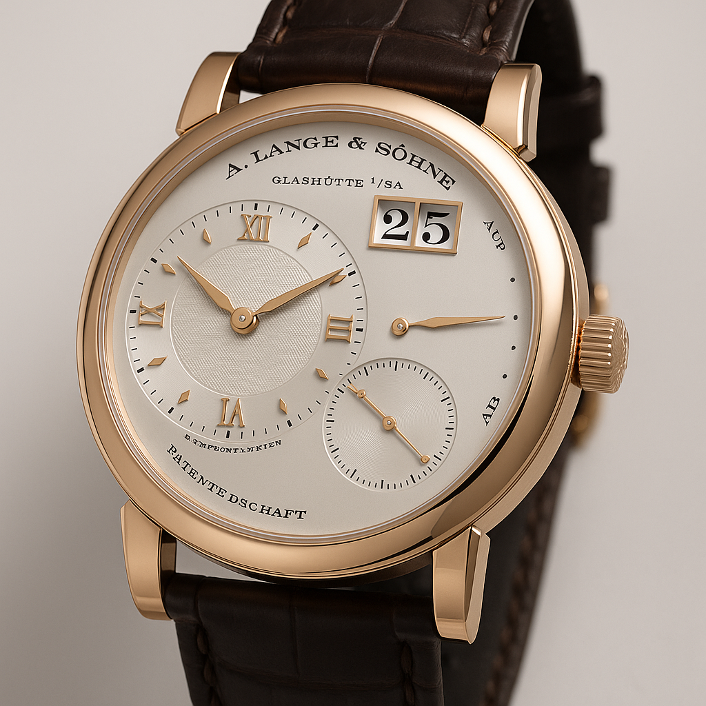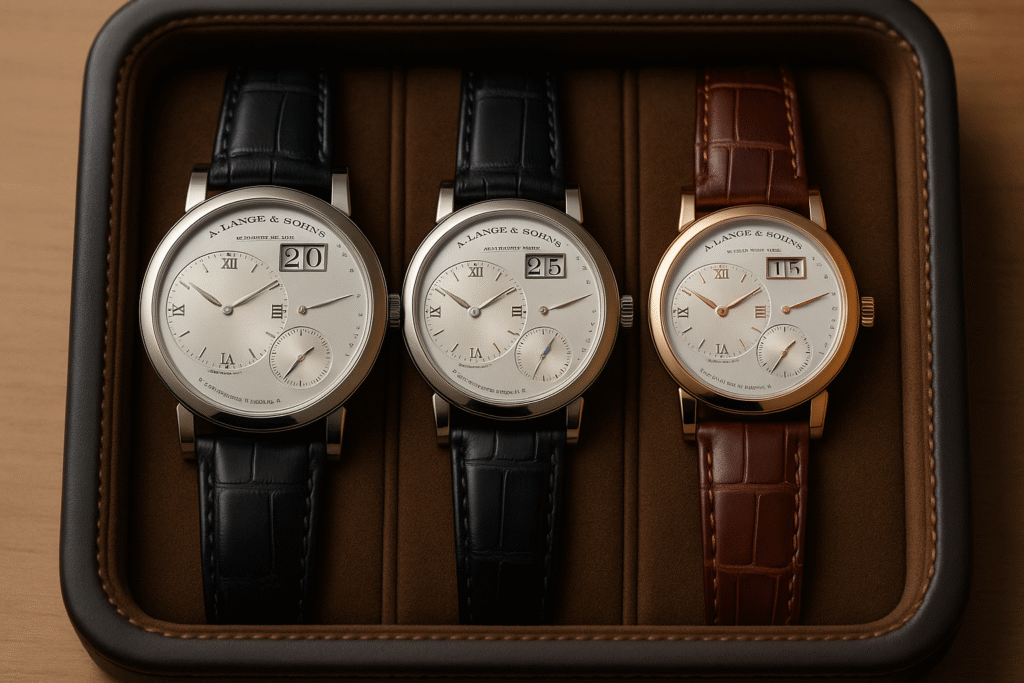 | Lange 1 (current gen.) | Platinum, white/pink/yellow gold | 38.5 mm | Cal. L121.1 (manual) | 21,600 vph | 72 hours (twin barrels) | Time, small seconds, outsize date (instant), power reserve |